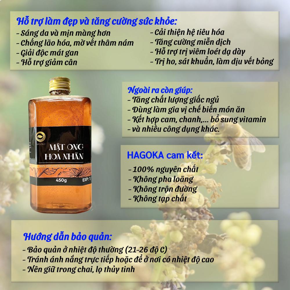 - Và còn nhiều công dụng tuyệt vời khác Mật ong hoa nhãn nguyên chất thương hiệu độc quyền HAGOKA cam kết: