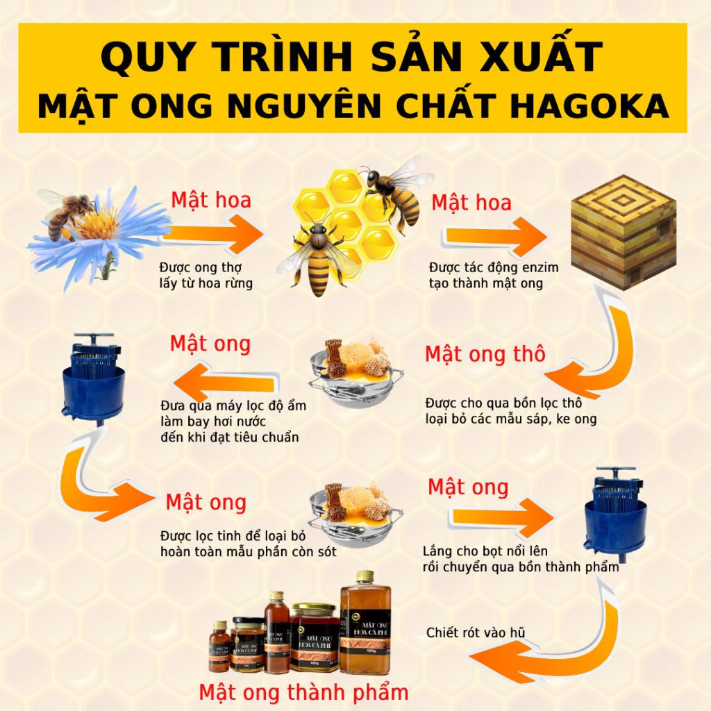 Mật ong hoa nhãn nguyên chất Hagoka do ong mật đi lấy phấn hoa về tổ tạo thành.