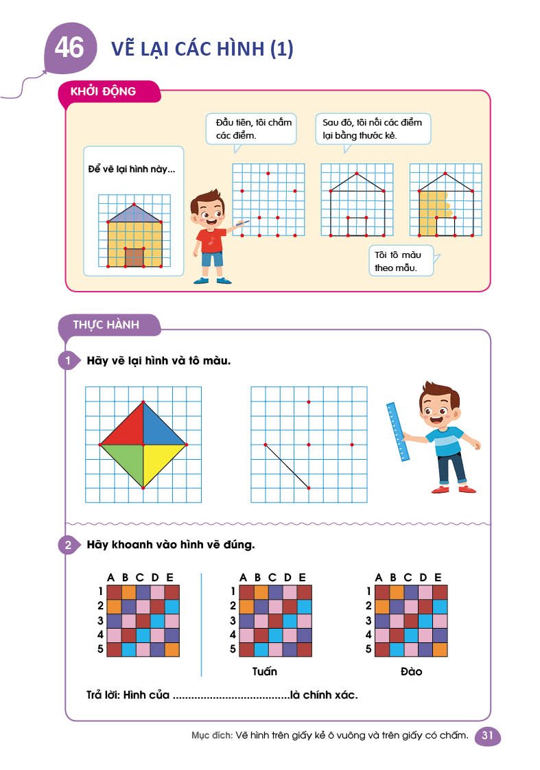 Với bộ sách này, bé được nhận biết các số, số lượng, số chẵn, lẻ; Các hình cơ bản, hình khối, thực hành kỹ năng toán học; Biết thêm bớt, nhóm số lượng 2, 3, 5, 10 đơn vị; Nhận biết Tuần, Tháng, các đơn vị thời gian; Thực hiện phép tính không nhớ và có nhớ trong phạm vi 100 bằng nhiều phương pháp thông minh…