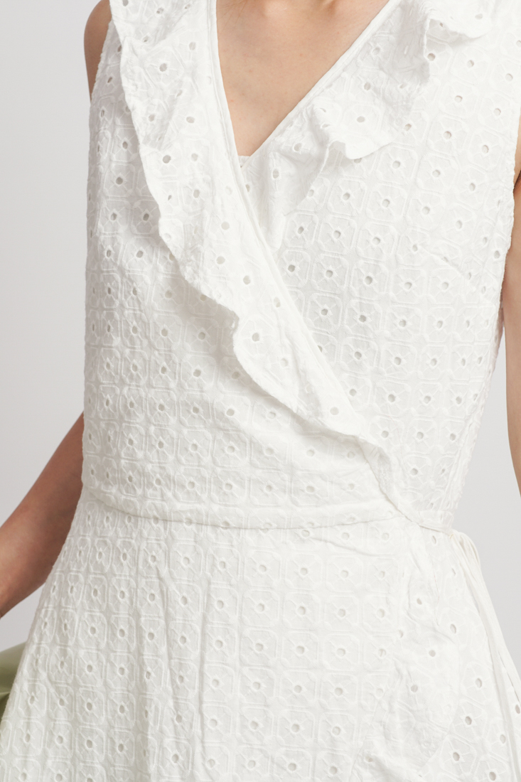 Maxi Cotton Cao Cấp Luna Llena, nền vải Lazer Cut độc đáo, tạo lỗ như ren, sang trọng, chất cotton dày dặn, thân trước đắp chéo, có thể tăng giảm eo. Phom rộng. Có lớp