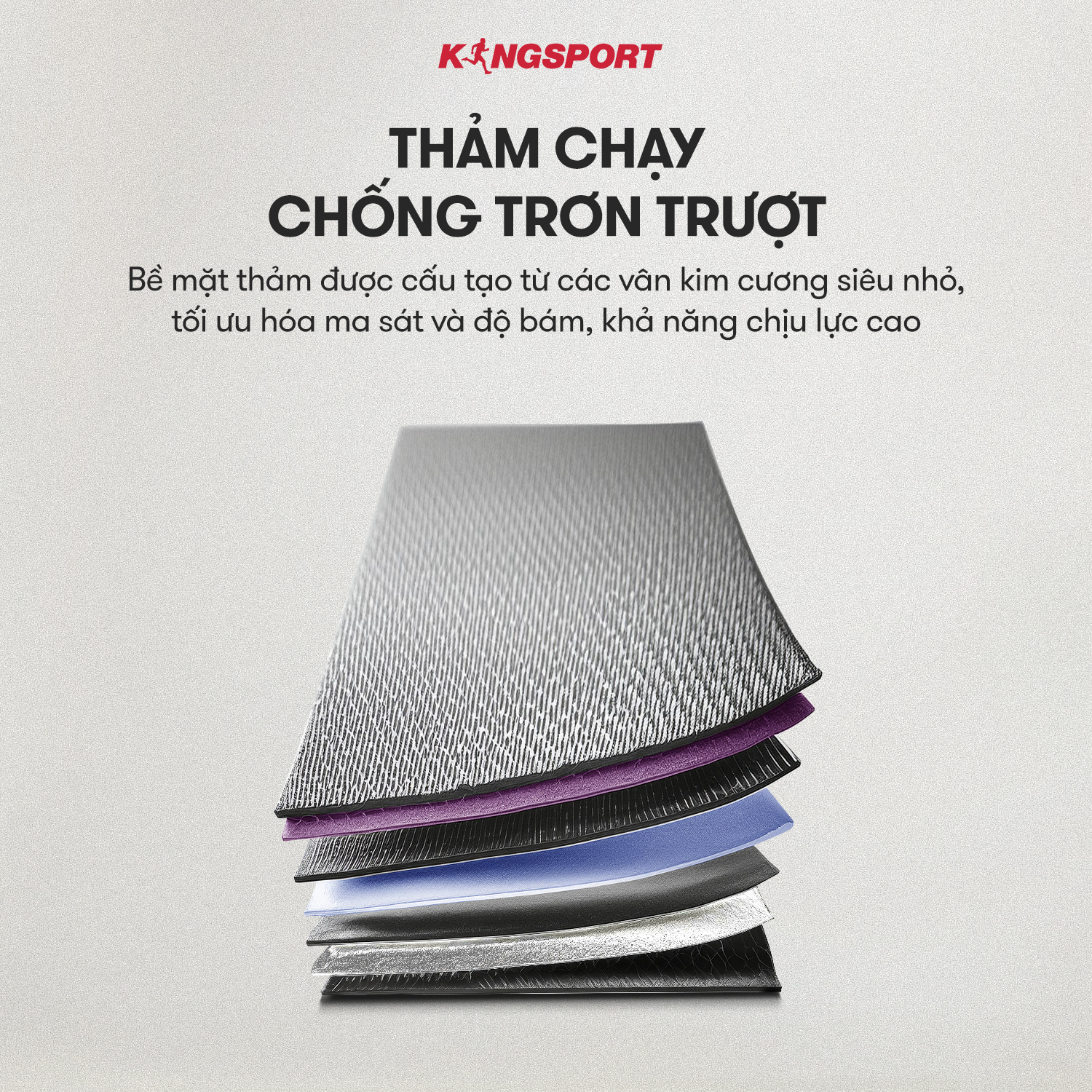 ️ Thảm chạy Diamond nhiều lớp chống ồn và trơn trượt, rộng rãi lên đến 1260x420 mm