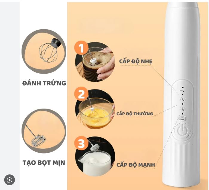 Mua tại TiktokMáy Đánh Trứng, Đánh Sữa Và Tạo Bọt Cafe Cầm Tay Di Động 3 Tốc Độ Sử Dụng Pin Sạc Cao Cấp