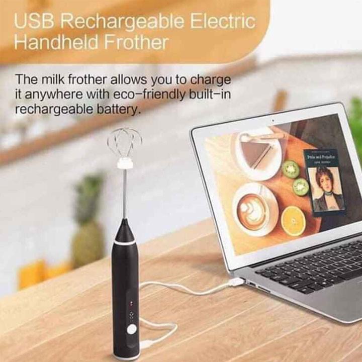 Máy tạo bọt cafe máy đánh trứng mini cầm tay sạc USB 3 tốc độ sử dụng pin sạc cao cấp