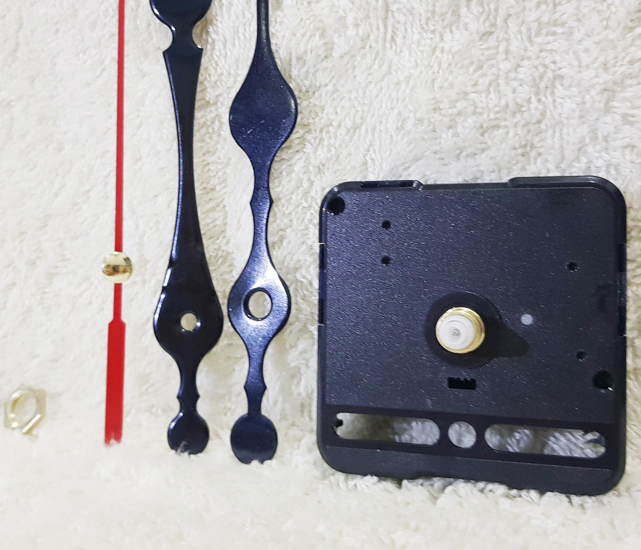MÔ TẢ SẢN PHẨM Bộ linh kiện gắn đồng hồ treo tường, đồng hồ dán tường cỡ lớn bao gồm: 01 máy đồng hồ: Quartz (chạy 2 kim cỡ lớn) 01 bộ 2 kim (Kích