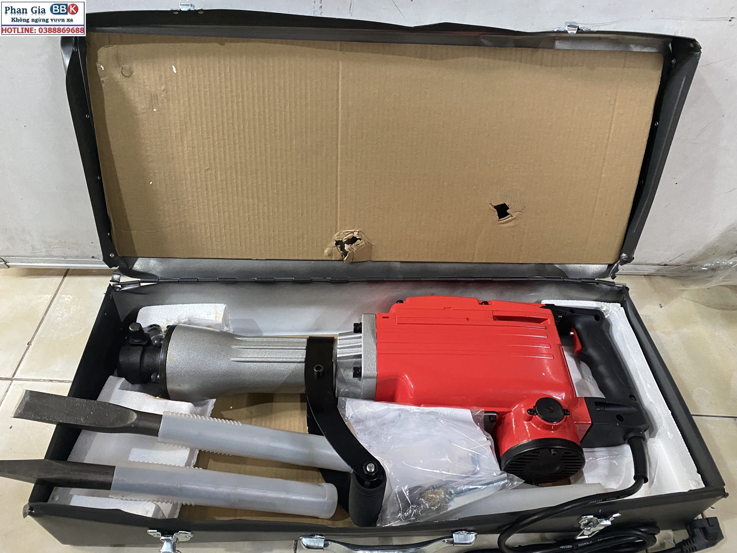 ️ Bộ phụ kiện: vali sắt chuyên dụng, 2 mũi đục, dụng cụ tháo mở