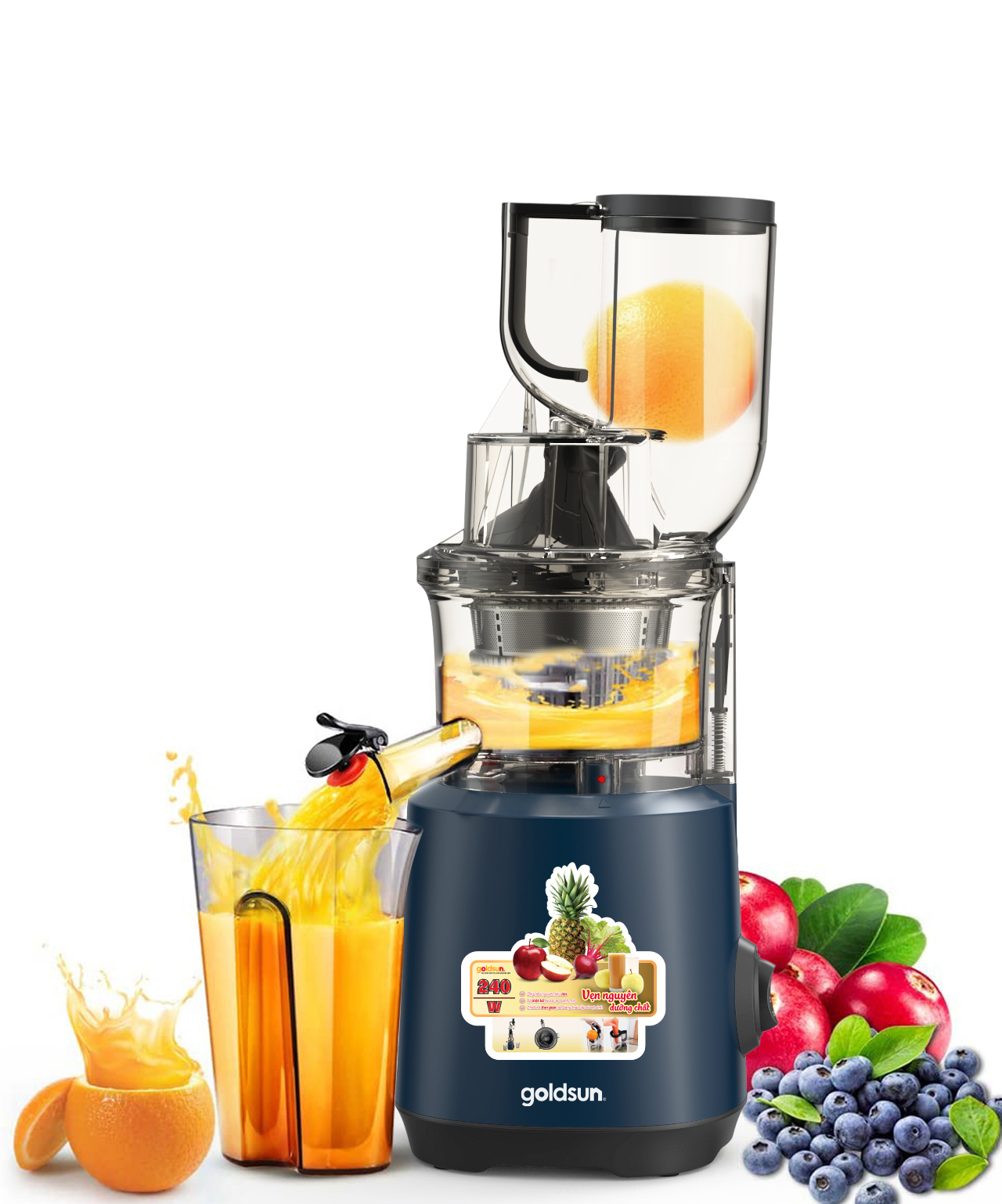 Goldsun GFJ4501 là dòng máy ép trái cây hoa quả hoạt động dựa trên nguyên lý trục vít dạng xoắn ốc thu nhỏ dần để ép trái cây thu lấy nước và hỗ trợ giữ được hàm lượng chất dinh dưỡng cao hơn 3 lần so với máy ép thông thường. Sản phẩm được thiết kế hài hòa với cảm giác sang trọng, hiện đại và tinh tế với độ bền cao theo thời gian sử dụng, phù hợp với không gian bếp gia đình bạn.
