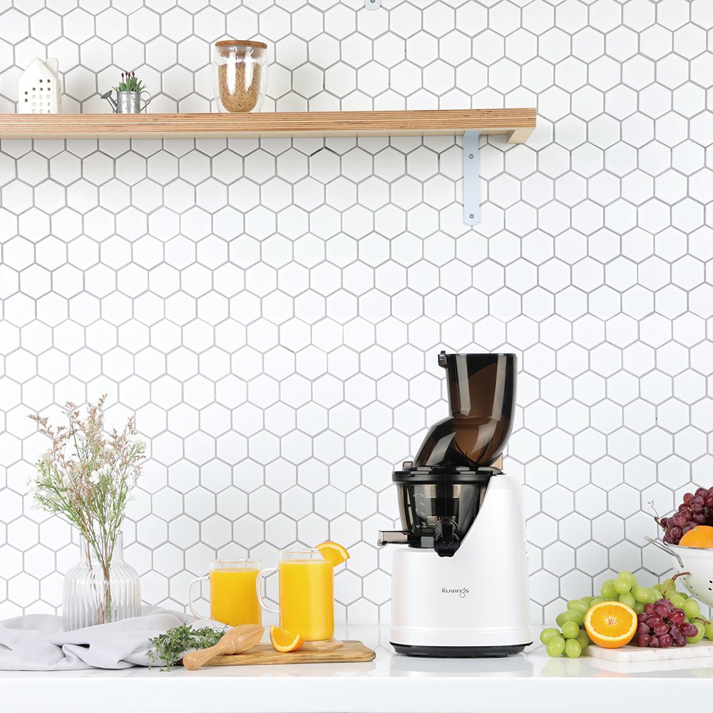 Máy ép trái cây tốc độ chậm hiệu Kuvings Series Hands-Free tự động cắt và ép trái cây cho lượng nước ép nhiều gấp 2 lần, giữ được nhiều Vitamin, Enzym trong rau củ quả gấp