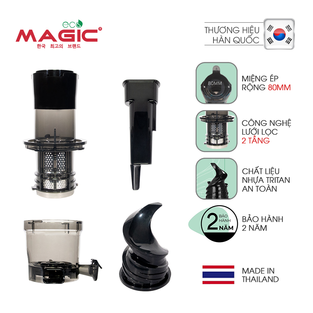CÔNG DỤNG CHÍNH - Ép trái cây, rau, củ. TÍNH NĂNG VÀ VẬN HÀNH - Máy ép chậm Mutosi MJ-86 sử dụng phương pháp ép nén lạnh ở tốc độ chậm, khác với phương pháp