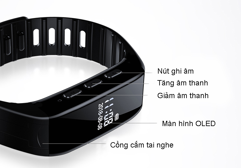 Thông số kỹ thuật: Dung lượng bộ nhớ: 8G Pin: 300mA Li battry Thời gian ghi: 90 giờ Thời gian chờ: 25 giờ Micro: Tích hợp Tỉ lệ tách tạp âm: >80JB Hỗ trợ Định