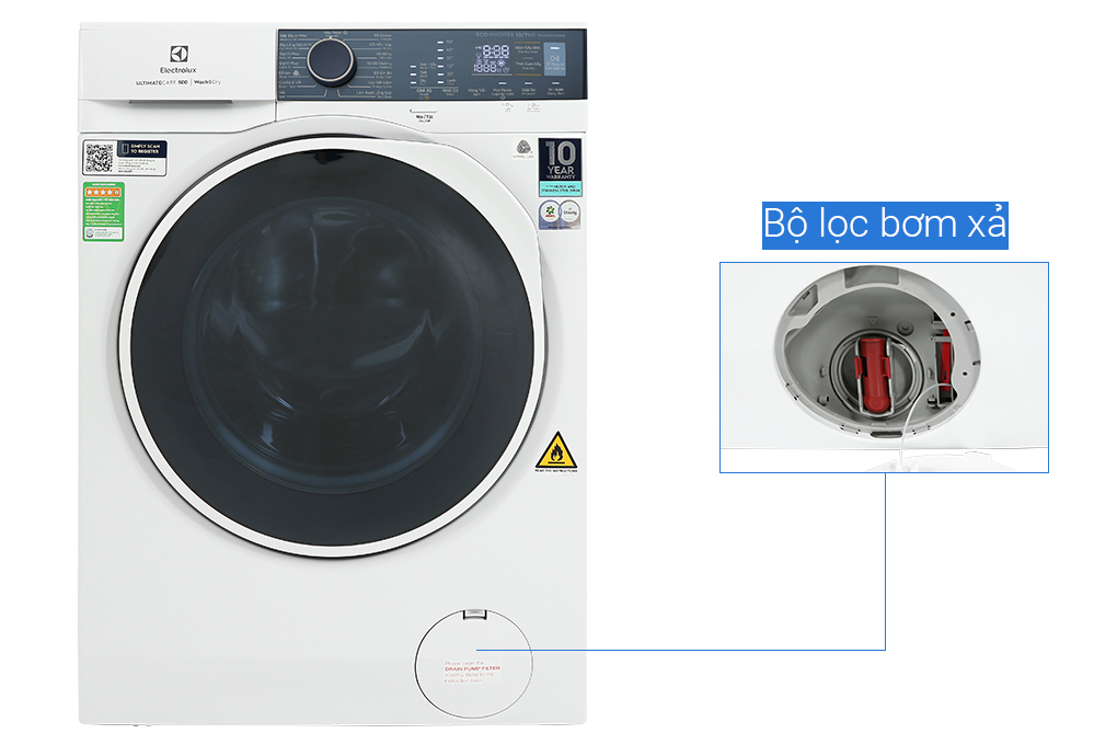 - ĐƯỢC KHUI THÙNG KIỂM TRA sản phẩm trước khi thanh toán/ký nhận Máy giặt sấy Electrolux Inverter 10 kg EWW1024P5WB sở hữu kiểu dáng nhỏ gọn cùng với gam màu trắng thanh lịch, trung tính mang đến cho không gian nhà bạn thêm phần sang trọng và trang nhã. Ngoài ra, máy giặt sấy còn được tích hợp bảng điều khiển tiếng Việt có nút xoay, cảm ứng và màn hình hiển thị hiện đại, giúp người dùng dễ dàng thao tác, sử dụng. Tiện lợi với 15 chương trình giặt khác nhau được tích hợp sẵn Chiếc máy giặt Electrolux này được tích hợp 15 chương trình giặt khác nhau bao gồm: giặt chăn ga, giặt nhanh 15 phút, giặt nhanh 39 phút, giặt sấy 60 phút, xả + vắt, đồ cotton, đồ hỗn hợp, đồ trẻ em và 7 chương trình giặt khác đáp ứng tốt nhu cầu giặt giũ hàng ngày của gia đình. Tiêu biểu, chương trình giặt nhanh 15 phút giúp bạn tiết kiệm thời gian khi giặt giũ hiệu quả. Ngoài ra máy còn được tích hợp thêm chế độ sấy đồ len, giúp quần áo khô nhanh hơn và ít bị giãn. Khối lượng giặt 10 Kg, sấy 7 Kg phù hợp cho gia đình từ 5 - 7 thành viên Máy giặt Electrolux này sở hữu tính năng giặt và sấy quần áo, tiết kiệm không gian, chi phí khi không cần phải mua thêm máy sấy. Với khối lượng giặt 10 kg, khối lượng sấy 7 kg máy đáp ứng tốt nhu cầu sử dụng gia đình từ 5 - 7 thành viên hoặc các gia đình có ít thành viên hơn nhưng nhu cầu giặt giũ cao. Vận hành êm ái, tiết kiệm điện năng nhờ công nghệ EcoInverter được trang bị công nghệ EcoInverter cùng hệ thống truyền động dây Curoa giúp cho quá trình giặt êm ái, vận hành bền bỉ. Bên cạnh đó, công nghệ EcoInverter giúp tiết kiệm tới hơn 50% điện năng tiêu thụ khi hoạt động giảm chi phí điện, nước hàng tháng cho gia đình bạn. Ngoài ra, bạn có thể an tâm sử dụng máy trong thời gian dài nhờ nhà sản xuất cam kết bảo hành 10 năm cho phần động cơ máy. Loại bỏ đến 99.99% vi khuẩn và chất gây dị ứng với công nghệ giặt hơi nước Hygienic Care Máy giặt Electrolux cửa trước này được trang bị công nghệ giặt hơi nước Hygienic Care giúp quần áo được giặt bằng hơi nước ở nhiệt độ cao, khả năng diệt khuẩn lên đến 99,9% góp phần đẩy lùi vi khuẩn và tác nhân gây dị ứng như mạt bụi, phấn hoa, lông mèo có trên quần áo. Hòa tan bột giặt hoàn toàn với công nghệ UltraMix Công nghệ UltraMix giúp hòa tan bột giặt hoàn toàn khi bắt đầu chu trình giặt giúp nâng cao hiệu quả làm sạch, không cặn hóa chất trên quần áo nhằm hạn chế tình trạng cặn bột giặt còn bám trên quần áo gây kích ứng da. Ngoài ra, công nghệ UltraMix cũng có khả năng hòa tan hoàn toàn nước xả vải giúp lưu giữ mùi thơm lâu dài trên quần áo. Tính năng thêm đồ Add Clothes khi đang giặt tiện lợi Với tính năng Add Clothes cho phép bạn thêm đồ giặt còn sót ngay cả khi máy đang giặt. Chỉ cần đèn tại chức năng Add Clothes trên bảng điều khiển còn sáng, bạn có thể tạm dừng chu trình giặt của máy, thêm đồ cần giặt và tiếp tục việc giặt giũ như bình thường.