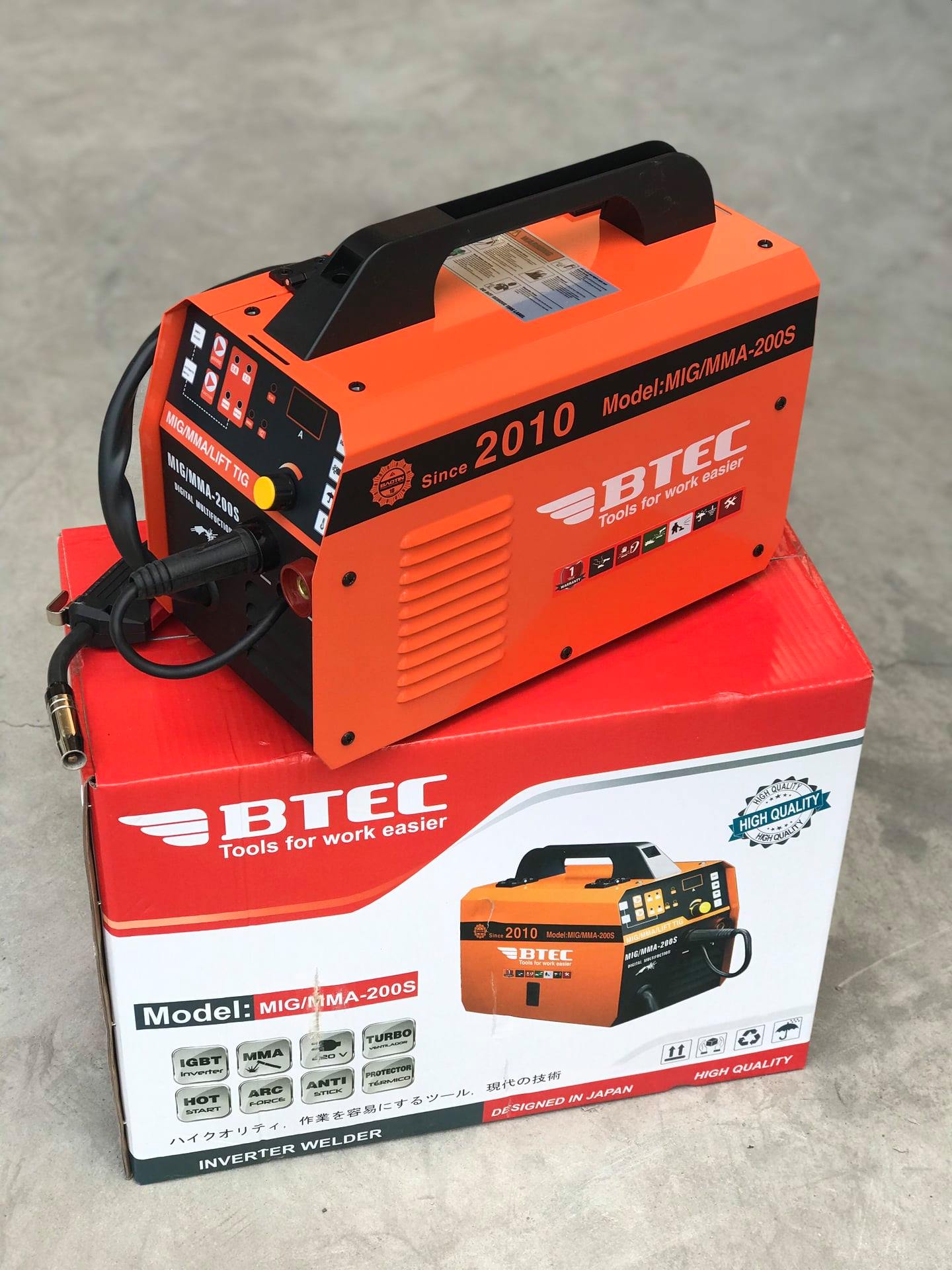 Máy hàn Btec MIG/MMA 200S được sử dụng nhiều trong xây dựng, cơ sở hàn, thiết bị cơ khí, xe, tàu, công ty quảng cáo,... Máy được áp dụng công nghệ biến tần IGBT giúp tiết kiệm điện năng và cho hiệu suất hàn lên đến 80%, bền bỉ với mạch dò nhiệt.