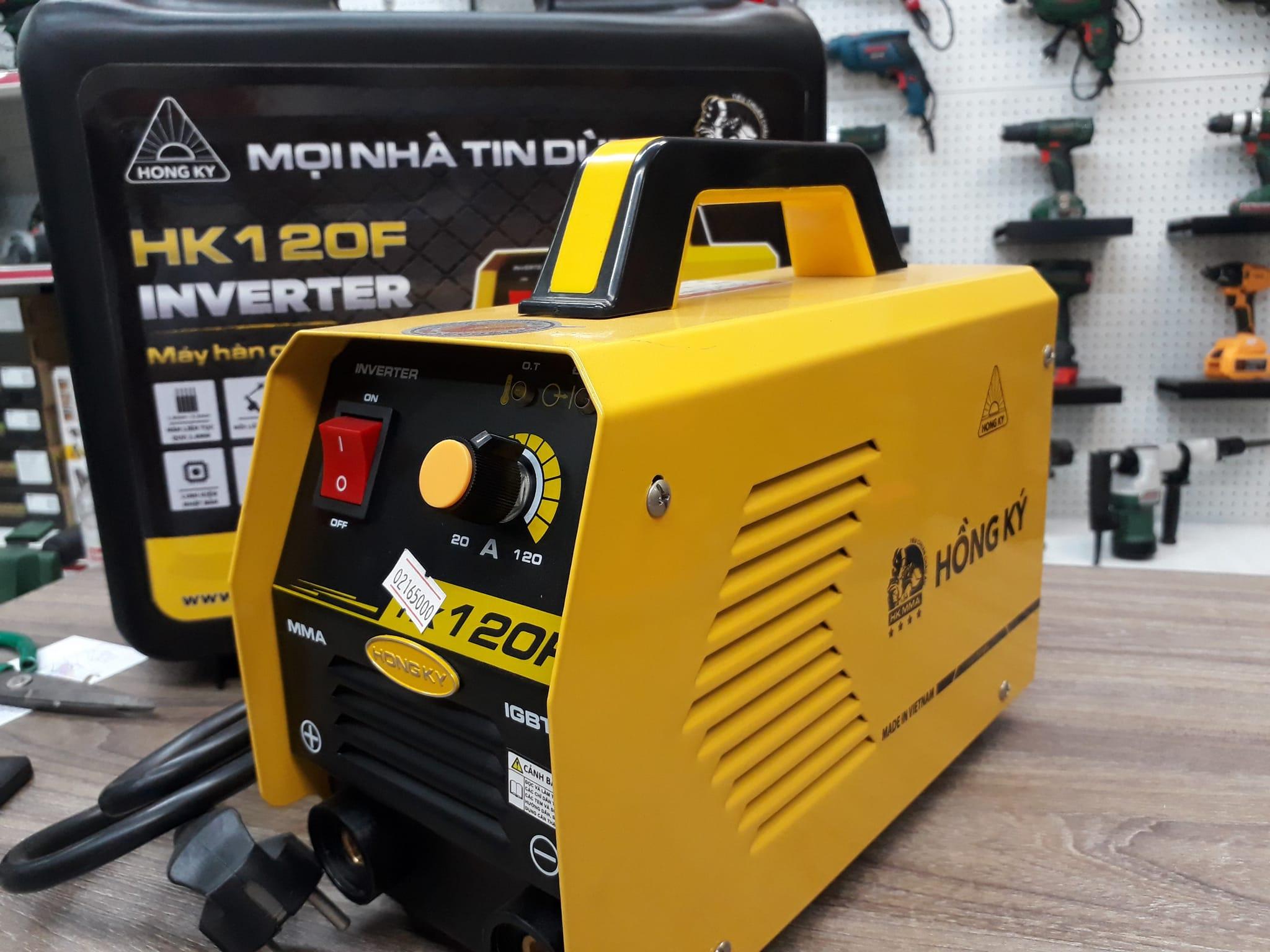 Máy hàn điện tử HK 120F được Hồng Ký sản xuất dành riêng cho gia đình. Máy có thiết kế nhỏ gọn với trọng lượng chỉ 4.6kg. Máy được đựng trong thùng nhựa đen có tay xách giúp người dùng mang vác, di chuyển dễ dàng.