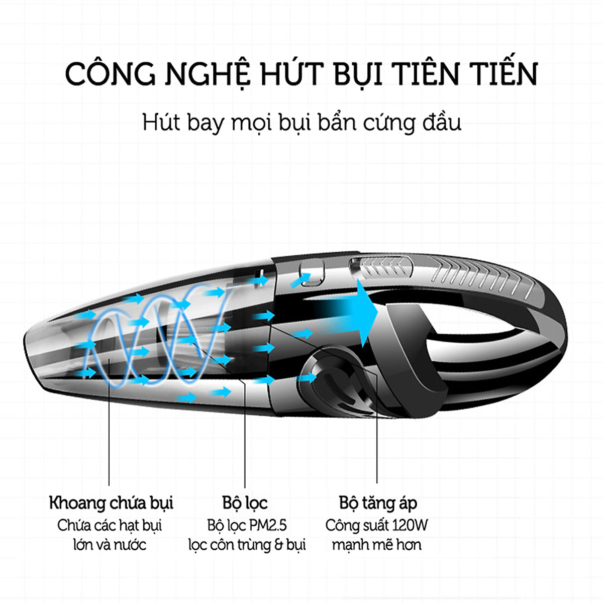 Máy hút bụi cầm tay không dây loại sạc pin dùng cho gia đình - công suất 120w - lực hút 3200kpa - dung lượng 2200mAh - có thể hút bụi khô và nước - màu xám đen - Hàng Chính Hãng là sản phẩm hiện đại, không chỉ hút bụi cho xe hơi và gia đình mà còn được thiết kế sang trọng, tinh tế kết hợp với sức hút mạnh mẽ, đem lại sự trải nghiệm tuyệt vời cho khách hàng.