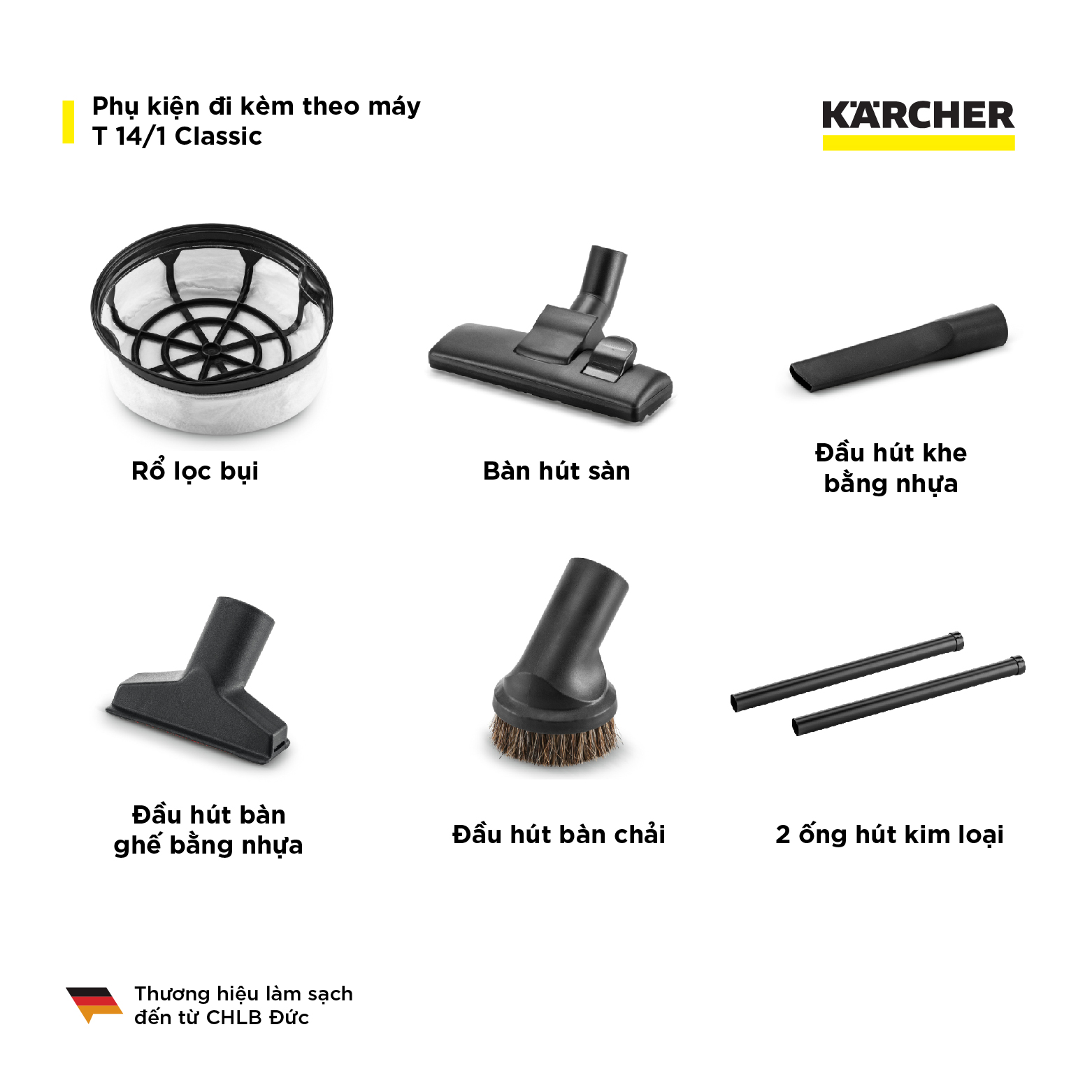 - Máy hút bụi khô công nghiệp Karcher T 14/1 Classic là một thiết bị nhẹ, bền bỉ và có hiệu suất hút mạnh mẽ.