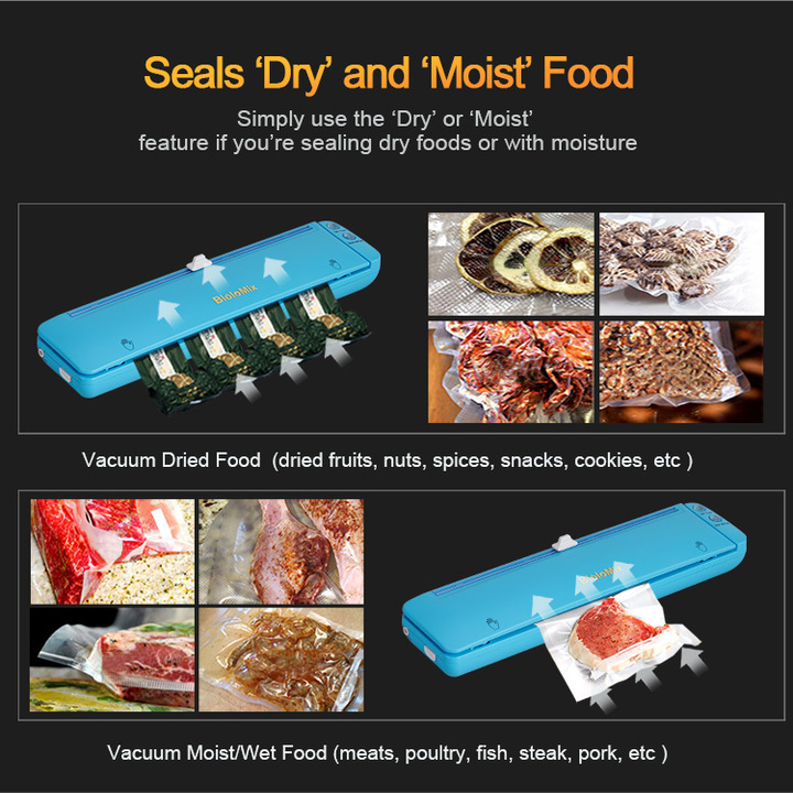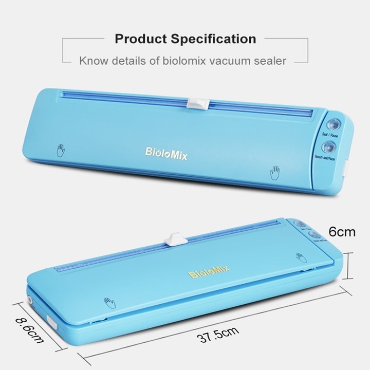 - Nấu ăn và chuẩn bị bữa ăn sẽ trở nên dễ dàng hơn, kinh tế hơn và nhanh hơn, với thực phẩm tươi sống đã sẵn sàng để được rã đông và sử dụng hoặc giữ tươi mới hơn những thực phẩm được để lưu trữ trong tủ đông, mà không bị ảnh hưởng tới chất lượng thực phẩm. Bảo vệ sức khỏe của bạn và những người thân yêu trong gia đình bằng những thực phẩm tươi ngon và bảo đảm – Tiết kiệm chi phí & Giữ tươi ngon: Máy hút chân không có thể kéo dài thời gian bảo quản thực phẩm một cách hiệu quả mà còn giúp cho việc nấu nướng và chuẩn bị bữa ăn trở nên dễ dàng và tiết kiệm hơn. – Máy hút chân không tự động Biolomix W100 có kích thước nhỏ, thiết kế mỏng, bạn có thể đặt nó vào tủ dễ dàng. Máy đóng gói chân không này cũng nhẹ, bạn có thể lấy nó bằng một tay. – Hút mạnh hơn gần như loại bỏ tất cả không khí để duy trì chất lượng và kéo dài độ tươi của thực phẩm