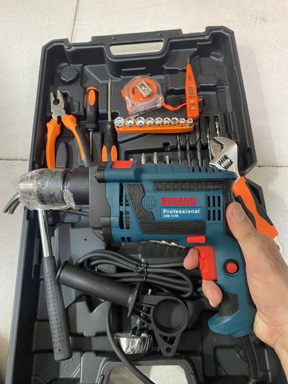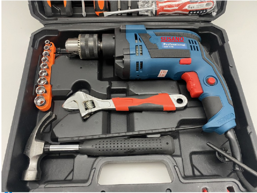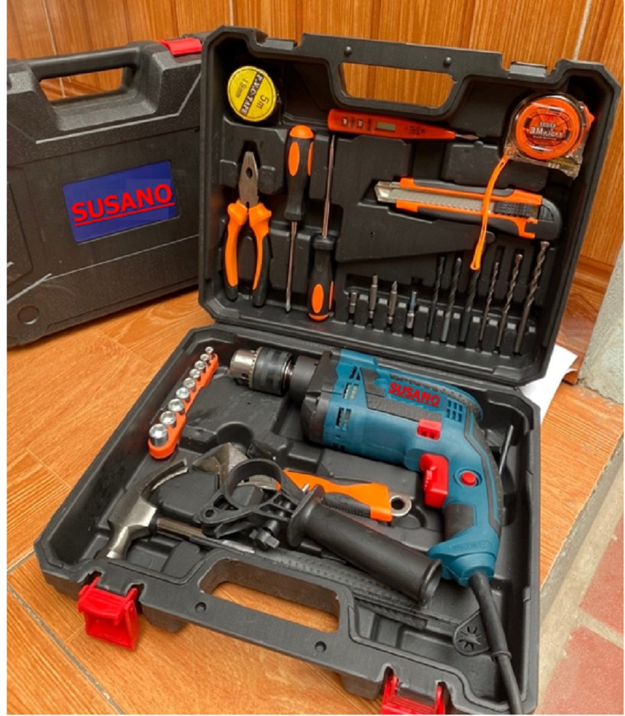 BỘ KHOAN 1350W - RẤT MẠNH _ ĐÂY ĐỦ ĐỒ NGHỀ ( búa, mỏ lết, bút thử điện , vít, kiềm, mũi khoan, thước kéo, ) 1350W chuyên dùng để khoan sắt, tường, gỗ, tôn, bắn vít…đầy đủ đồ nghề , mua về là sài thôi
