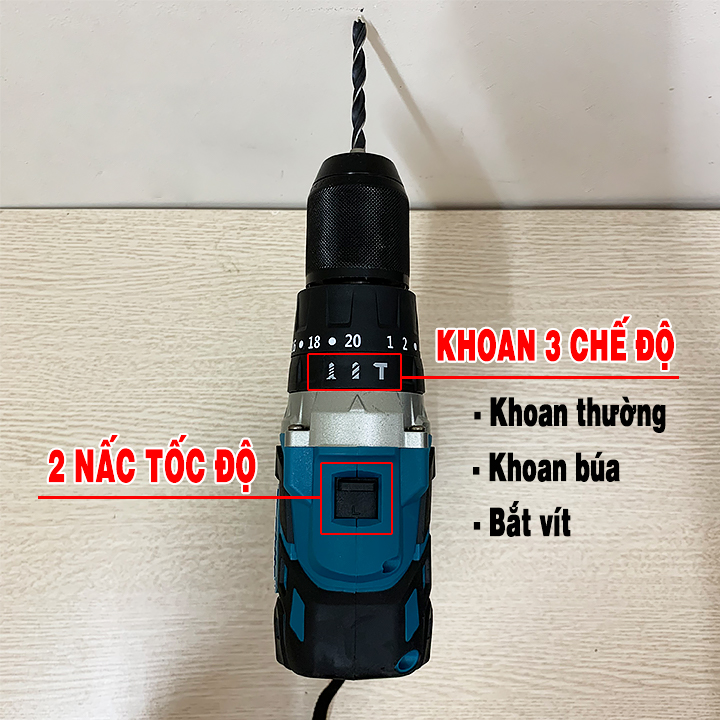 THÔNG SỐ KỸ THUẬT Gỗ: 36mm (1-7/16") Tốc độ không tải: Cao: 0-1,400, Thấp: 0-400 Trọng lượng tịnh: 1.7kg (3.8lbs) Xuất xứ Trung Quốc Lực đập/phút: Cao: 0-21,000 , Thấp: 0-6,000 Công nghệ Nhật Bản