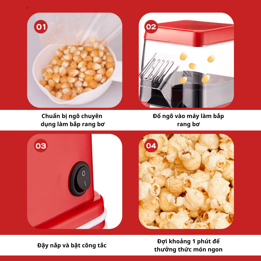 Máy làm bắp rang bơ sẽ mang lại niềm vui cho bạn khi tận hưởng thời gian xem phim, nghe nhạc. Máy rất tiện sử dụng và còn có lớp cách nhiệt giúp bỏng luôn