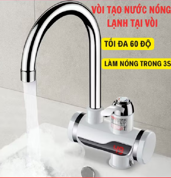 YÊU CẦU ÁP LỰC NƯỚC MẠNH ( Téc nước cao trên 6m) Kích thước 15*30cm Lõi thép, vỏ nhựa ABS an toàn Đầu cắm chống rò rỉ Màn hình LCD hiển thị nhiệt độ 2 chế độ nước thường và nước nóng Làm nóng trong 3 giây, tối đa 50 độ Sản phẩm cần thiết cho mọi nhà Xua tan nỗi ngại nước lạnh mùa đông Nấu cơm, đun nước, nấu canh nhanh hơn Tiết kiệm điện năng và thời gian