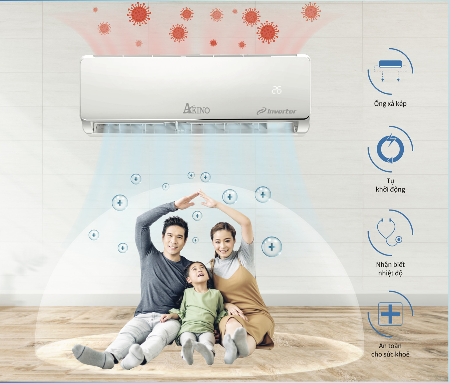 Máy Lạnh AKINO 1.5HP Inverter AKN-12CINV1FA-12000BTU Có thiết kế hiện đại, trang nhã,tinh tế. Tiết kiệm điện năng. Khả năng tự làm sạch vượt trội và ngăn chặn vi khuẩn. Tự khởi động lại khi