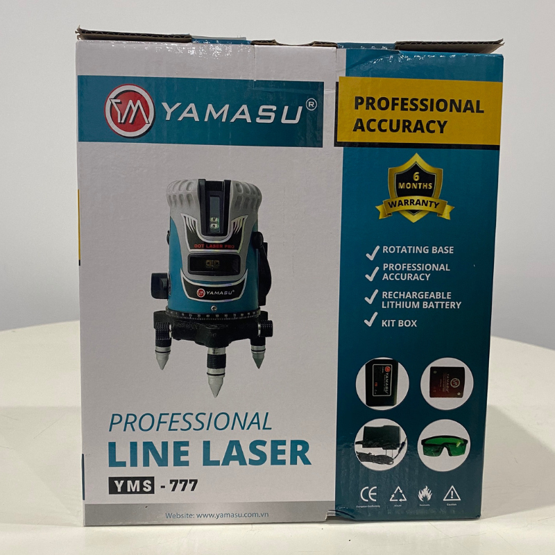 Máy cân bằng laser 5 tia Yamasu YMS-777 PRO được sản xuất từ chất liệu cao cấp, cho độ bền tốt cùng khả năng chịu được nhiệt độ tối ưu, hỗ trợ khả năng làm việc với hiệu suất ổn định trong thời gian lâu dài, đảm bảo độ an toàn cùng chất lượng xuyên suốt quá trình hoạt động. Cùng với vỏ ngoài được làm từ nhựa tổng hợp, cho khả năng bền bỉ, không gây biến dạng khi chịu đựng va đập có nhiều tính năng tối ưu giúp gia tăng tuổi thọ của sản phẩm, giúp máy không bị hư hỏng như các loại máy thông dụng trên thị trương hiện nay. Cần kiểm tra sản phẩm kỹ lưỡng trươc khi sử dụng, sau khi dùng, cần lau chùi vệ sinh sản phẩm, cất giữ và bảo quản sản phẩm tránh các trường hợp hư hỏng ngoài ý muốn.