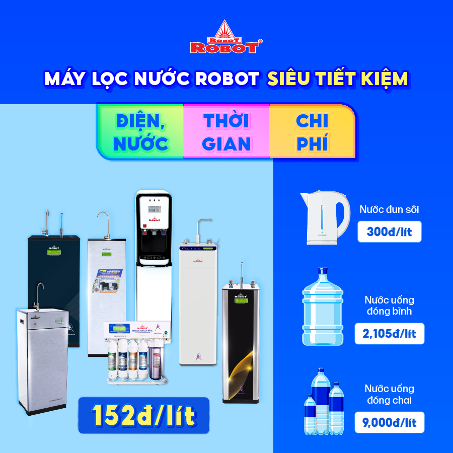 • Công nghệ RMC – LCD độc quyền, biết được chất lượng nước trước & sau lọc   Bộ vi mạch RMC-LCD thông minh thiết kế riêng của ROBOT, mọi chi tiết vận hành máy được hiển thị trên màn hình LCD, cảnh báo mọi rủi ro cho người sử dụng   Tuổi thọ lõi lọc được tính theo lưu lượng nước sử dụng, không tính theo thời gian ghim điện như các máy thông thường, tiết kiệm tối đa chi phí thay lõi lọc