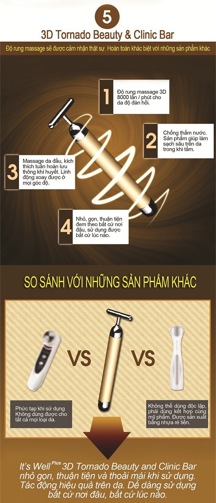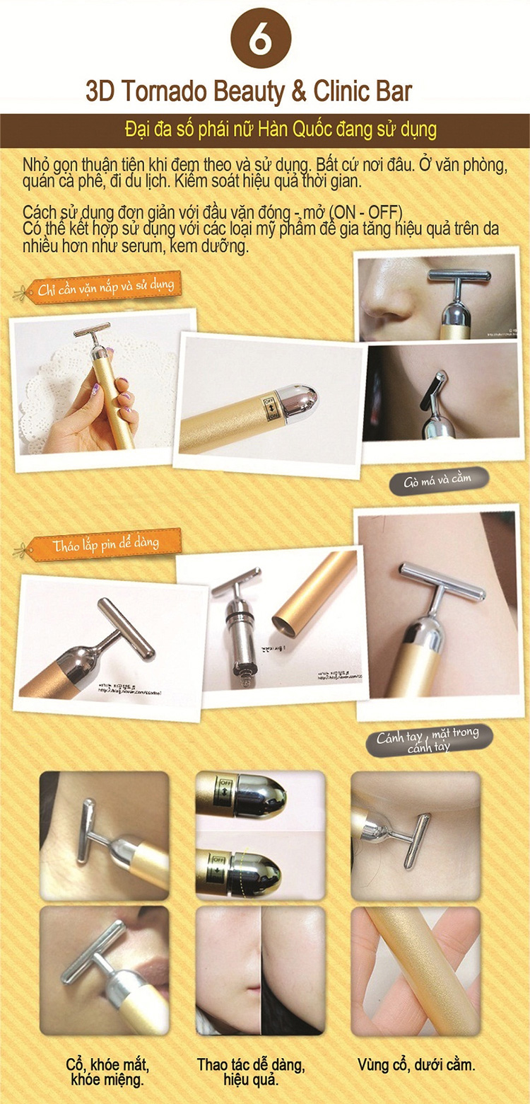 - Máy Massage 3D Tornado Beauty & Clinic Bar đa chức năng mang lại hiệu quả trong dưỡng da và phòng chống lão hóa. Bên cạnh đó máy còn có thể mát xa da đầu,