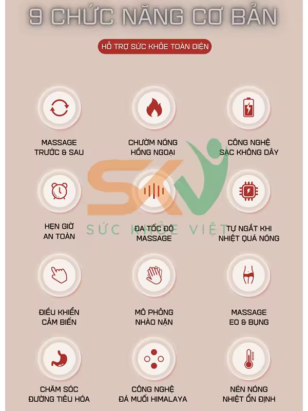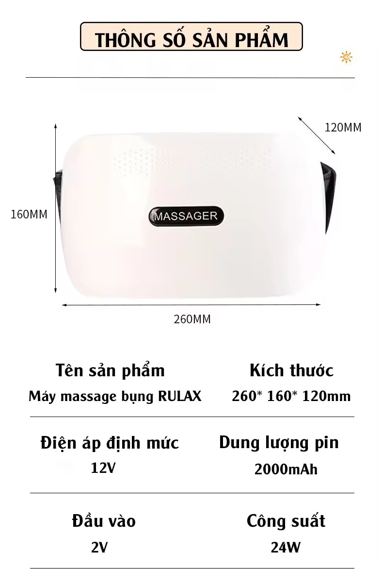 - Thiết kế tiện dụng, massage thao tác nhân tạo, massage sâu vùng eo và bụng để giảm áp lực và giúp cơ thể bạn cảm thấy dễ chịu hơn. THÔNG SỐ KỸ THUẬT: