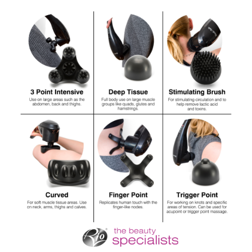 6 đầu massage có thể thay đổi linh động phù hợp với nhu cầu sử dụng và những vùng cơ khác nhau trên toàn bộ cơ thể.
