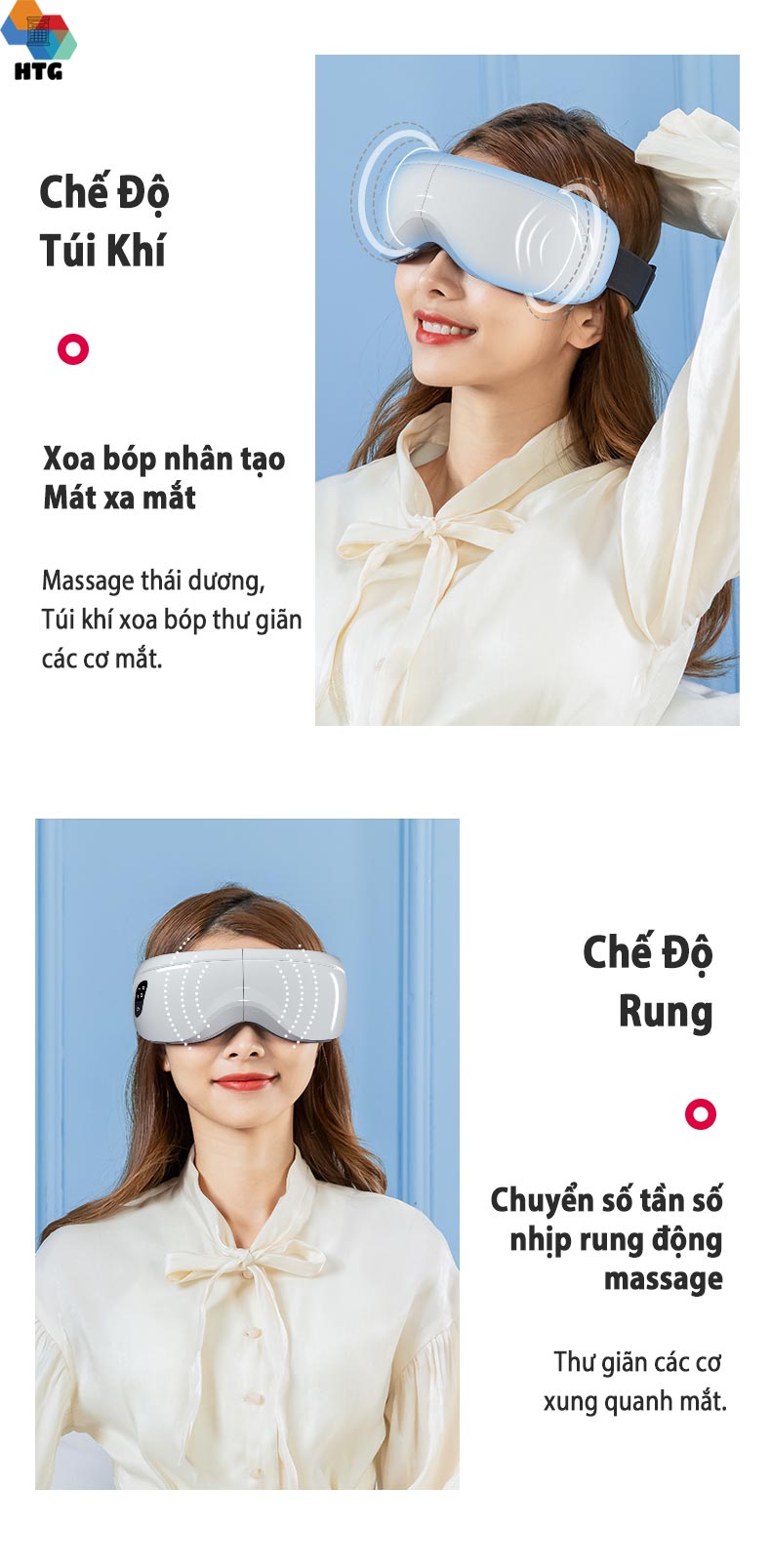 Máy massage mắt HTG MM05 tích hợp điều khiển từ xa, 5 in 1 phiên bản nâng cấp, 2 cấp độ xoa bóp
