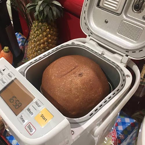 - Sau khi nghe tiếng bíp, lấy bánh mì ra. ☛ Ưu điểm: Nhỏ - gọn – đẹp nhất trong các loại máy làm bánh mì. Thiết kế máy cao, gọn, để được trong bếp chật. Nhẹ, có quai xách như nồi cơm điện, vuông vắn lau chùi rất dễ, chia ngăn nguyên liệu siêu thông minh mà các máy khác không có (các máy rẻ tiền hơn: phải tự hoà men, tự căn chỉnh đổ ụp vào khuôn, dễ làm đấy nhưng thành phẩm ra không ngon, bánh hỏng). ☛ Hạn chế: Mỗi mẻ chỉ làm được 1 ổ vừa vặn 500-600g. Không làm được ổ to đùng. Tuy nhiên hạn chế này không đáng kể vì bánh mì tươi, cho gia đình 1 ổ như vậy là chuẩn rồi.