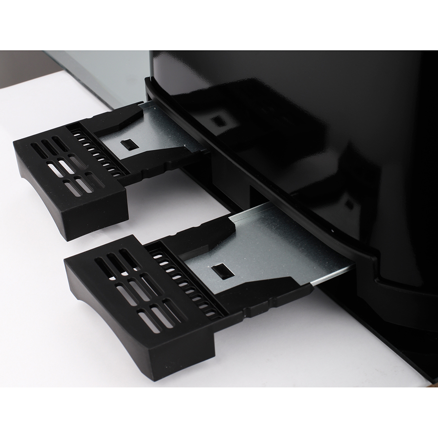 Sáu mức độ nâu có thể điều chỉnh Kẹp bánh mì nướng tích hợp Hai khe nướng bánh mì cực rộng Tự động định tâm bánh mì Đầu gắn bánh mì và ngăn đựng vụn