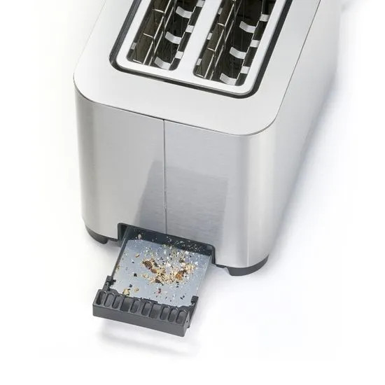 Sáu mức độ nâu có thể điều chỉnh Kẹp bánh mì nướng tích hợp Hai khe nướng bánh mì cực rộng Tự động định tâm bánh mì Đầu gắn bánh mì và ngăn đựng vụn