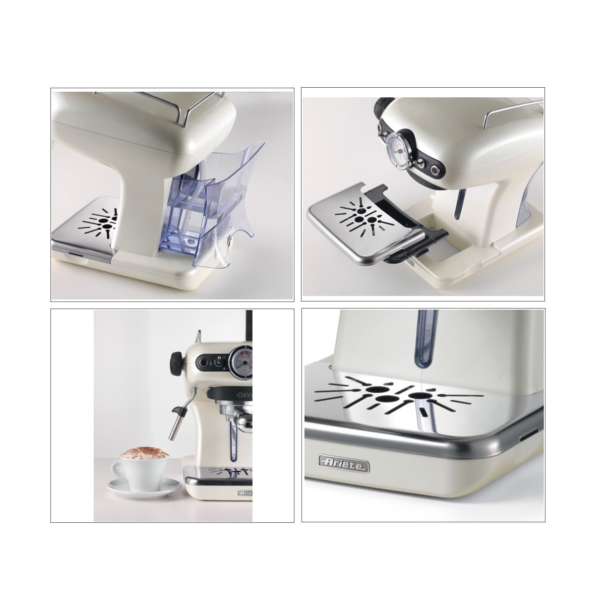 Máy pha cà phê Ariete thiết kế kiểu dáng cổ điển, sang trọng thích hợp với nhiều không gian. Bạn sẽ dễ dàng chuẩn bị cho mình ly cà phê thơm ngon, hay 1 ly capuchino, cà phê sữa hấp dẫn.
