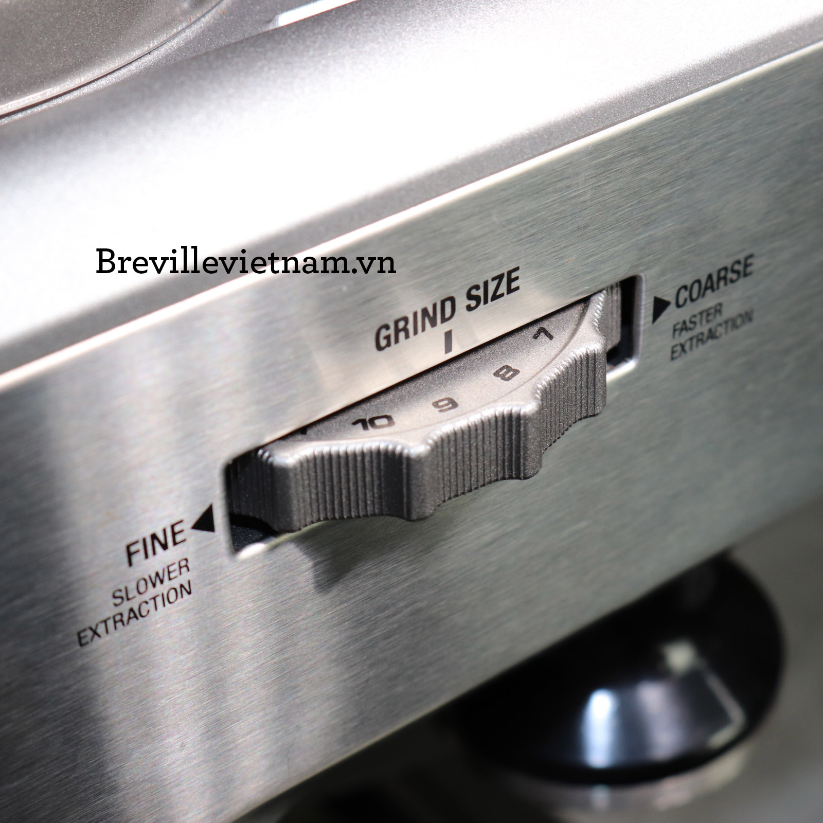 Máy pha cà phê Breville the Barista Express 870 được sử dụng rộng rải ở Việt Nam trong hơn 5 năm trở lại đây. Với sự mạnh mẽ của máy pha cà phê Breville 870 thì sản phẩm đang được sử dụng cho việc bán xe đẩy cafe. Vượt trội ở máy pha cafe Breville này đó chính là sự tiện lọi của máy xay tích hợp máy pha.lưỡi dao hình nón với độ chính xác siêu cao và lên tới 15 kích chỉnh độ mịn.