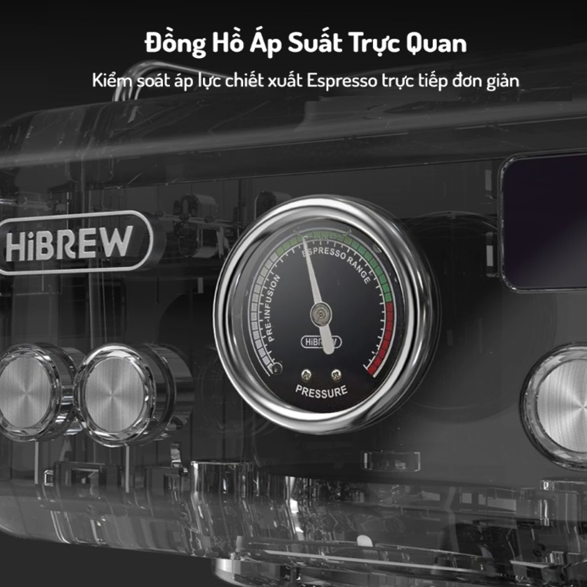 - Tích hợp đồng hồ áp suất kiểm soát shot cafe espresso