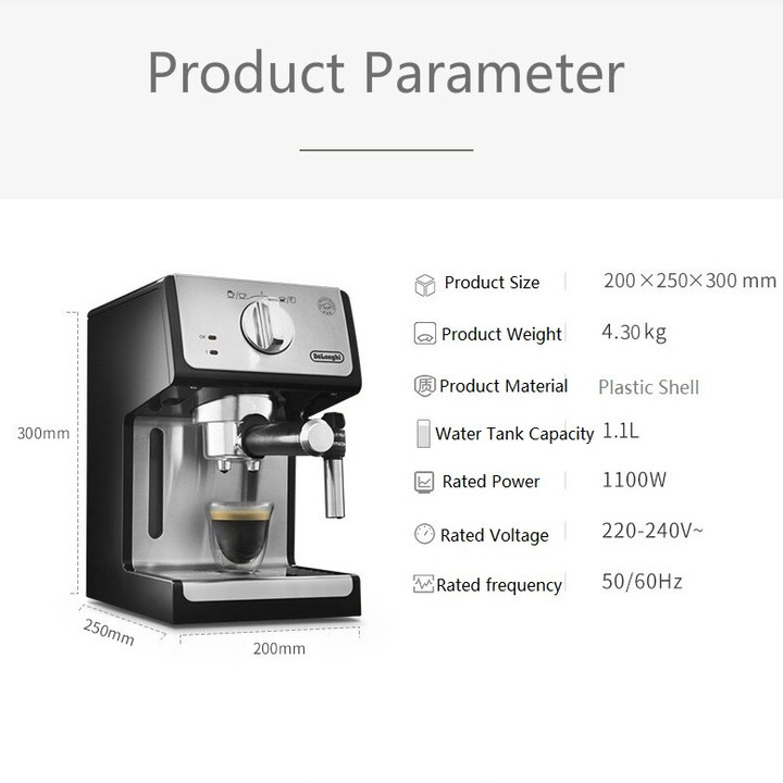 Bơm Italy áp suất 20 bar tạo ra tách cà phê đậm đà Công suất 1400W, điện áp 220-240V/50Hz-60Hz Gia nhiệt nhanh chóng, đảm bảo cà phê chiết xuất với nhiệt độ lý tưởng nhất