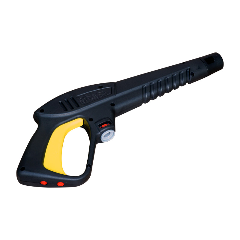 PHỤ KIỆN ĐI KÈM: 1 súng phun, 1 nòng súng, 2 đầu phun (1 đầu phun nước dạng tia có thể thay đổi thay đổi từ tia phun thẳng tập trung vào 1 điểm thành tia phun xoè, 1 đầu turbo phun dạng toả), 1 dây phun cao áp: 6m. Máy có bổ sung thêm bộ phận lọc cho tất cả các máy xịt rửa (Transparent Filter). Máy đều tự hút được nước.