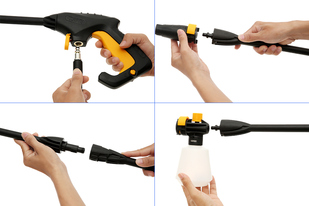 Ống phun 5m, ống cấp nước 2m và dây điện 5m được trang bị trên máy rửa xe giúp bạn có thể di chuyển máy linh hoạt và dễ dàng làm sạch vết bẩn ở khoảng cách xa.