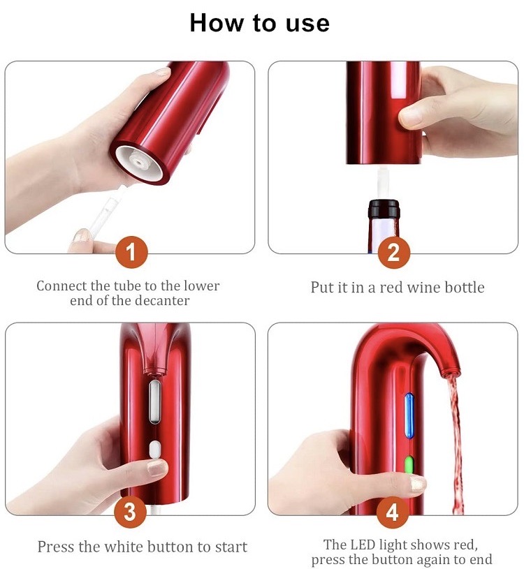 Máy rót rượu tự động điện tử dùng sạc USB SUNWAY SWA-EA01 Rượu vang cũng giống như con người cần thở để sống, vì vậy trước khi thưởng thức rượu vang hãy để rượu vang được