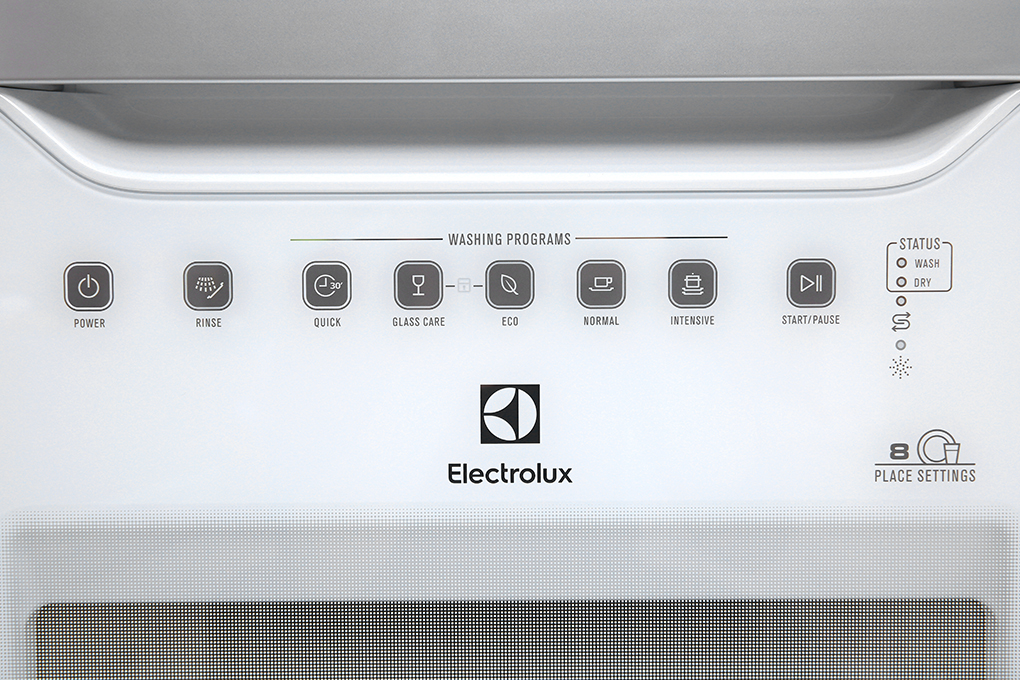 - Intensive (rửa chuyên sâu): Rửa các loại chén đĩa bẩn nhiều, nồi chảo, các loại chén đĩa có các vết thức ăn đã khô với thời gian 160 phút và có sấy khô tiện lợi. Lưu ý: Người dùng không nên dùng máy rửa chén cho chén đĩa bằng nhựa vì nhiệt độ cao sẽ ảnh hưởng đến độ bền của chén dĩa. Vận hành với độ ồn thấp Máy rửa chén hoạt động êm ái với độ ồn chỉ 60 dB (tương đương với nghe nhạc nhẹ), không hề làm ảnh hưởng đến sinh hoạt của các thành viên trong gia đình, kể cả khi bạn thư giãn, cho trẻ em ngủ,... Nhiều tiện ích hữu dụng đi kèm Máy rửa chén còn sở hữu nhiều chế độ tiện ích: chức năng rửa nhanh, rửa ly chuyên dụng, đèn báo chu kỳ rửa, giá đựng muỗng đũa tiện lợi, trang bị thiết bị chống tràn, tự ngắt nước khi bơm đầy bình, khoá trẻ em,... Kiểu dáng hiện đại, nhỏ gọn dễ bố trí, phù hợp với người có da tay dị ứng nước rửa chén, dành thêm thời gian bên gia đình Máy rửa chén Electrolux ESF6010BW 1480W có thiết kế dạng thùng, kích thước nhỏ gọn với chiều cao chỉ 60 cm là một giải pháp hoàn hảo cho những gia đình có diện tích nhà bếp khiêm tốn, giúp cho căn bếp của bạn trở nên sang trọng và rộng rãi hơn. Máy rửa chén mini với thiết kế dạng thùng linh hoạt có thể lắp đặt ở nhiều vị trí trong phòng bếp nhà bạn như: lắp vào hộc tủ dưới kệ bếp (không lắp âm vào tường), để trên mặt bếp,... Hiệu quả sử dụng cao đi đôi với khả năng tiết kiệm nước Máy rửa chén Electrolux mini với công suất 1480W rửa bát đĩa nhanh chóng, sạch bóng một cách dễ dàng và có thể rửa 8 bộ đồ ăn châu Âu, tương đương với 2 bữa ăn Việt của gia đình từ 2 - 3 người. Máy rửa chén gia đình Electrolux này tính năng Autoflex linh hoạt giúp tiết kiệm nước, điện và chất tẩy rửa mà không làm giảm hiệu suất rửa. Có thể rửa được tất cả các loại chén, tô, đĩa, ly và 1 số loại xoong nồi có kích cỡ vừa và nhỏ mà chỉ tiêu thụ khoảng 8 lít nước/ lần rửa. * Với các loại xoong nồi, bạn nên ưu tiên đặt ở ngăn dưới của máy để đảm bảo đủ không gian giúp chúng được làm sạch hiệu quả nhất và nhớ là hãy đặt úp xuống tương tự như các loại chén bát khác nhé. Bảng điều khiển cảm ứng, thiết kế các ký hiệu chức năng rõ ràng dễ sử dụng Lưu ý khi sử dụng: