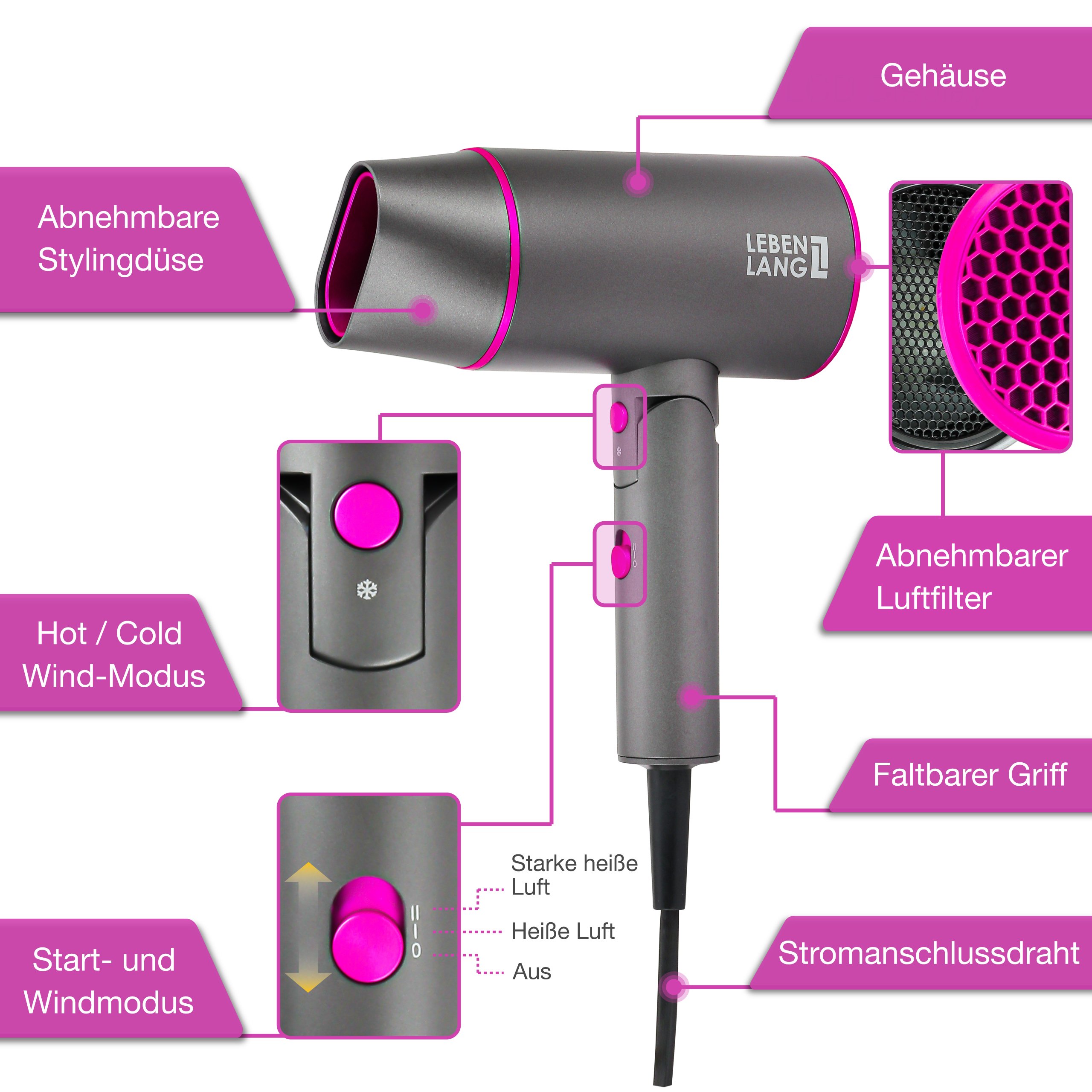 ✨Máy sấy tóc Lebenlang LBL3088 công suất 2100W của Đức, chống xơ rối tóc bằng công nghệ ion - Hàng Chính Hãng