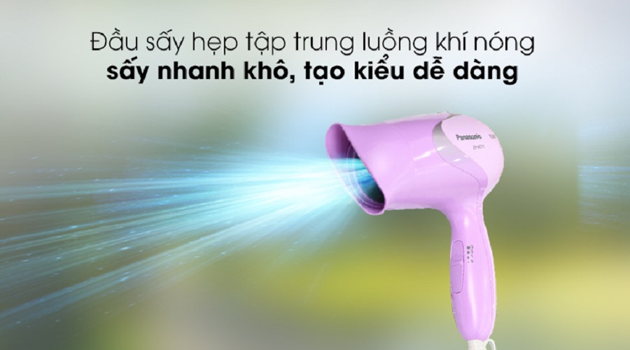 Máy sấy tóc Panasonic với thiết kế nhỏ gọn, dễ cầm nắm cùng công suất hoạt động mạnh mẽ 1800W giúp tóc nhanh khô, tiết kiệm thời gian sấy tóc Có 2 tốc độ