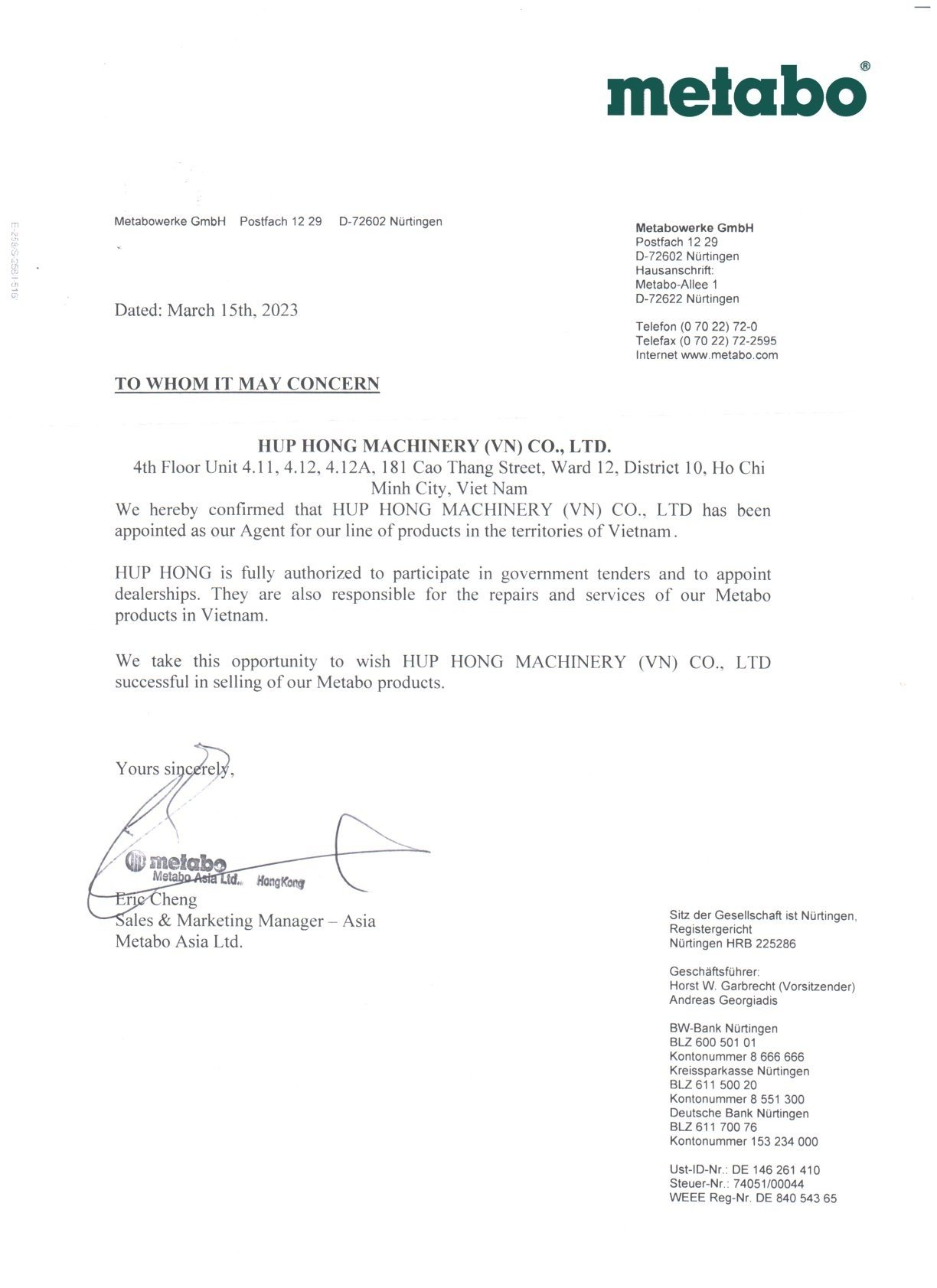 Với hơn 50 năm hoạt động trong ngành máy móc thiết bị, Hup Hong Việt Nam tự hào là nhà cung cấp dụng cụ điện & khí nén cầm tay, máy nén khí, máy khoan, máy hàn, bộ sạc ắc quy,… cho các công trình xây dựng, ngành công nghiệp dầu khí, công nghiệp kim loại, lắp ráp xe hơi, cửa hàng sửa chữa xe hơi,…. Các sản phẩm của chúng tôi có xuất xứ từ Châu Âu, Nhật Bản, Mỹ, Úc, Đài Loan, Trung Quốc, Hàn Quốc và nhiều quốc gia khác. Chúng tôi luôn cố gắng cập nhật và nâng cấp sản phẩm, chất lượng dịch vụ liên tục theo nhu cầu của thị trường để có thể phục vụ Quý khách hàng một cách tốt nhất.