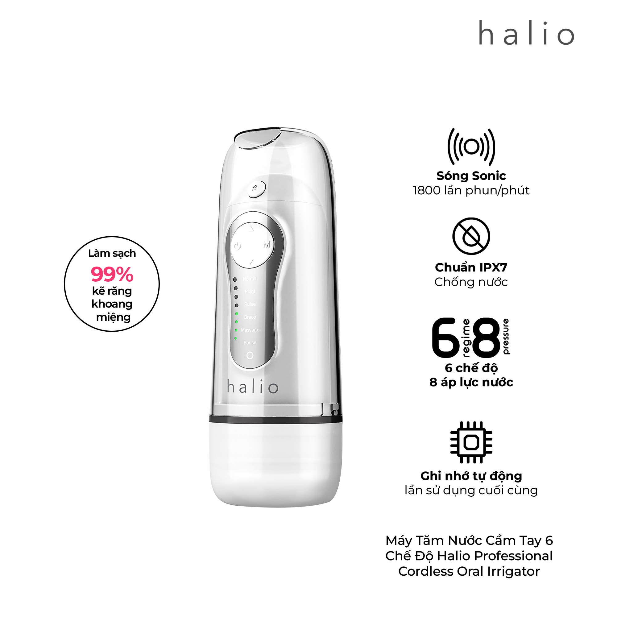Máy Tăm Nước Cầm Tay HALIO - 6 Chế Độ | Halio Professional Cordless Oral Irrigator