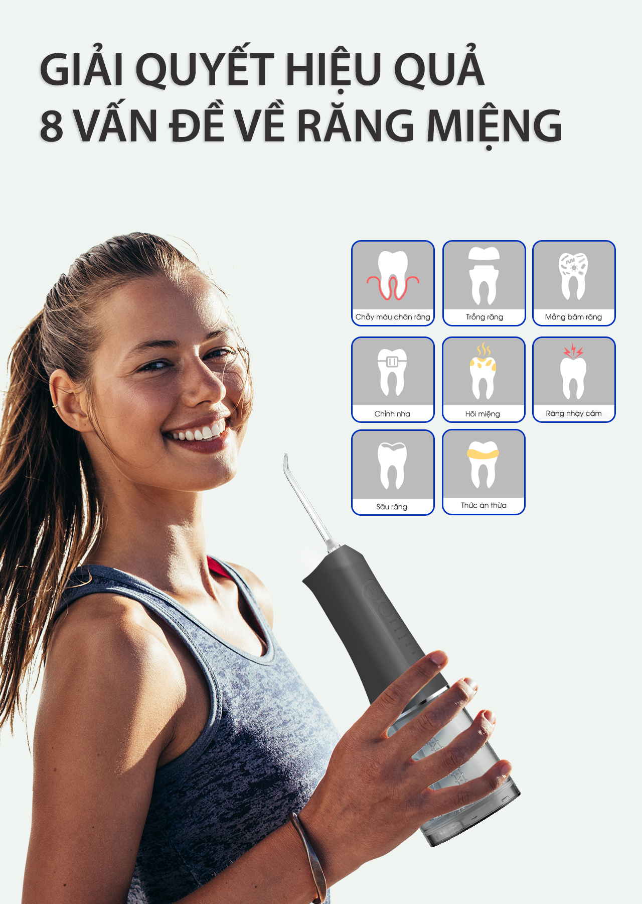 - Chế độ DIY cá nhân hóa: Người dùng có thể tự cài đặt áp lực nước phù hợp với nhu cầu riêng, đảm bảo việc chăm sóc răng miệng hiệu quả mà không gây khó chịu.