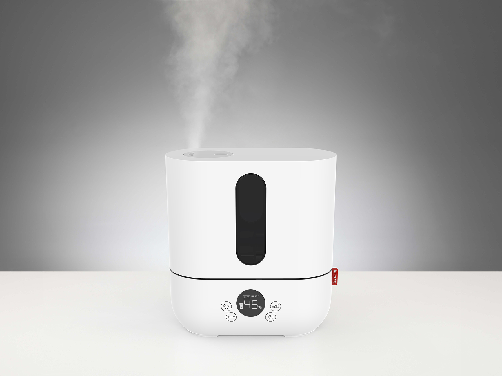 Nhập khẩu trực tiếp từ Thụy Sĩ - Bảo hành 2 năm Công suất tạo ẩm lớn dành cho diện tích từ 10-80m2 Thiết kế hiện đại, màn hình hiển thị độ ẩm, phím cám