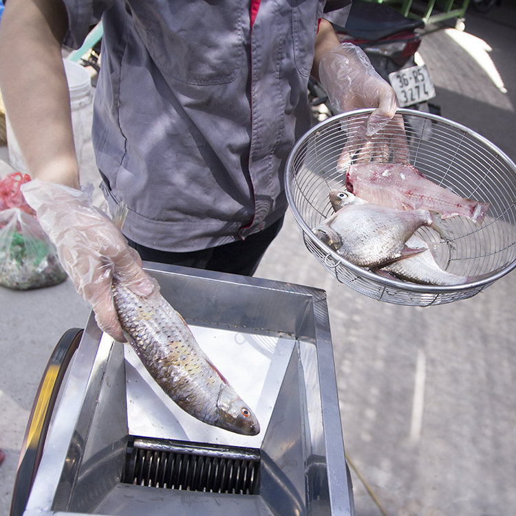 Để giúp các hộ chăn nuôi ba ba, cá chim, cá trê,… thái nhỏ các loại thức ăn như: cá mè nhỏ, cá tép dầu, cá lành canh, giun, ốc, ếch và phế phẩm từ