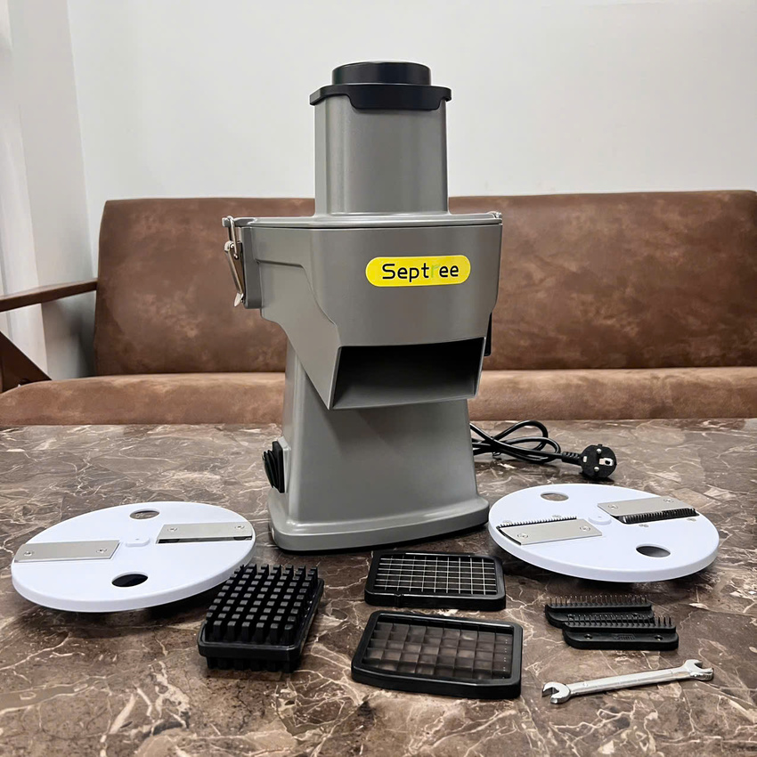 Máy thái rau củ quả nhà hàng, gia đình và khách sạn là dụng cụ hỗ trợ đắc lực cho các chị em nội trợ và đầu bếp khi vào bếp. Chiếc máy này sẽ giúp đầu bếp và chị em tiết kiệm thời gian và công sức gấp nhiều lần. Nó sẽ là người bạn đồng hành cùng các đầu bếp. Sau đây chúng tôi giới thiệu Máy thái rau củ quả đa năng cao cấp Septree GJ817. Hiện được xem là giải pháp tối ưu tiết kiệm thời gian, chi phí nhân công, tối đa hóa lợi nhuận cho việc chế biến rau củ số lượng lớn. Máy có thể cắt đa năng như: Cắt lát, cắt vuông,...Thành phẩm đều đẹp như 1, hạn chế hao hụt nguyên liệu.
