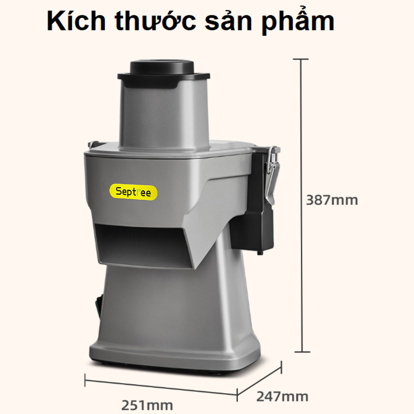 Máy thái rau củ quả nhà hàng, gia đình và khách sạn là dụng cụ hỗ trợ đắc lực cho các chị em nội trợ và đầu bếp khi vào bếp. Chiếc máy này sẽ giúp đầu bếp và chị em tiết kiệm thời gian và công sức gấp nhiều lần. Nó sẽ là người bạn đồng hành cùng các đầu bếp. Sau đây chúng tôi giới thiệu Máy thái rau củ quả đa năng cao cấp Septree GJ817. Hiện được xem là giải pháp tối ưu tiết kiệm thời gian, chi phí nhân công, tối đa hóa lợi nhuận cho việc chế biến rau củ số lượng lớn. Máy có thể cắt đa năng như: Cắt lát, cắt vuông,...Thành phẩm đều đẹp như 1, hạn chế hao hụt nguyên liệu.